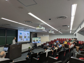 After the lecture, faculty members and research associates of IMI, along with students from the Department of Mathematics and the Graduate School of Mathematical Sciences, engaged in a lively question-and-answer session and discussion with Mr. Kakegawa and Mr. Ikura. Topics included comparisons between the structure and manufacturing of engine vehicles and EVs, design philosophies, and differences in software scale and associated challenges in EV. The colloquium concluded on a highly successful note.